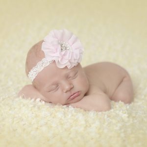 Pink chiffon flower with stones and pearls on a soft elastic lace headband
