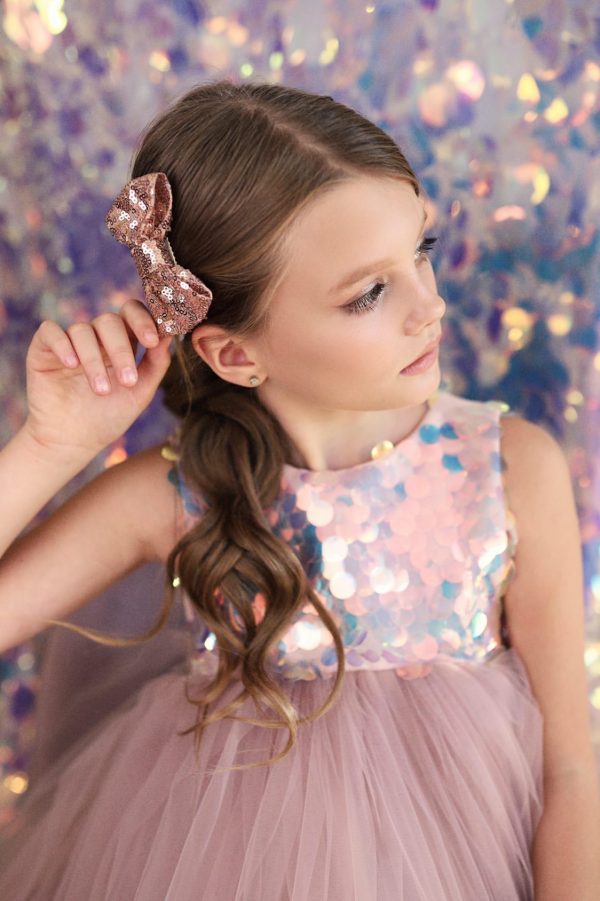 Bows, Hair AccessoriesBeautiful rose gold sequin bow placed on a clip