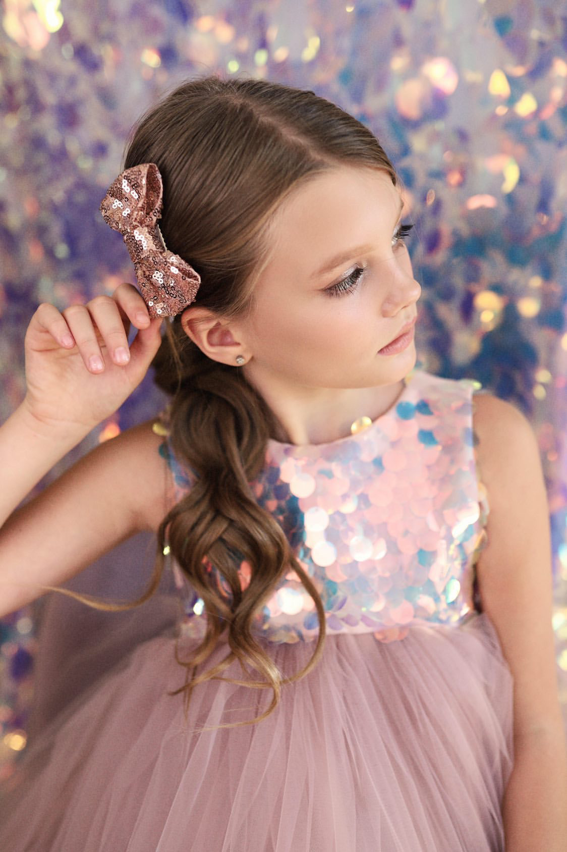 Rose gold sequin bow on a clip