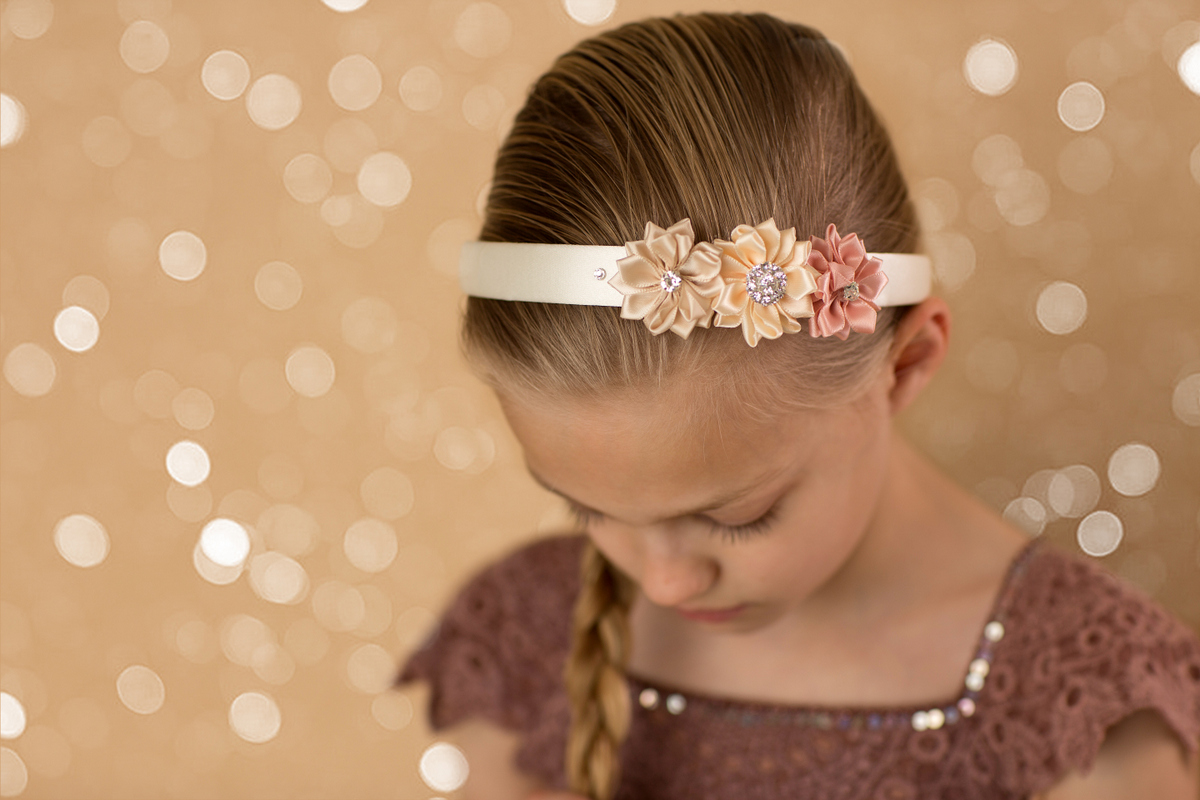 Alice bands, Hair AccessoriesSatin flowers in warm tones with rhinestones