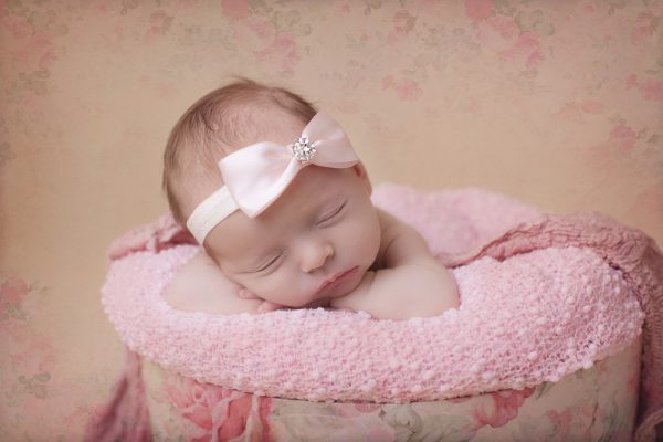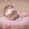 Light pink single satin bow with rhinestone on a soft headband