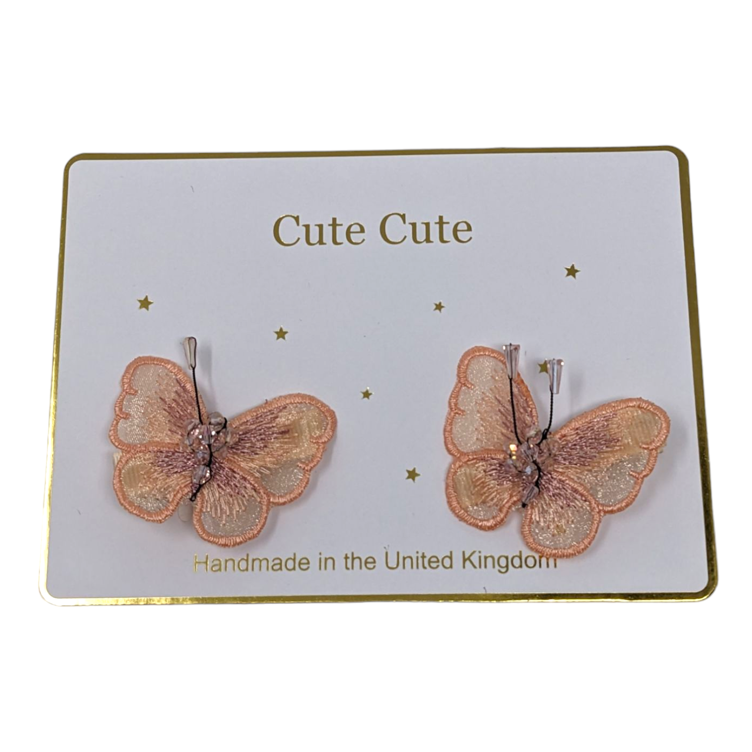 Set of two peach butterflies on clips