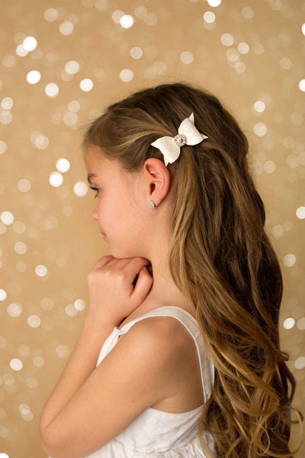 Small chunky glitter bow with rhinestone – choice of colours.