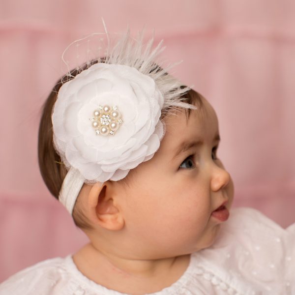 Hair Accessories, Headbands, Special occassionsBeautiful white silk layered flower with pearl and stone finished with marabou feather and delicate net veil.
