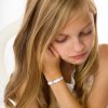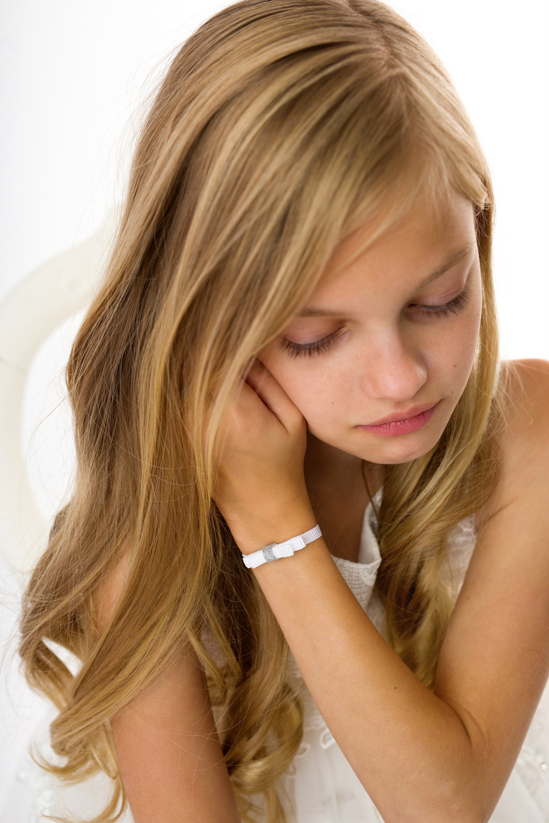 Outlet, SaleWhite ribbed small bow with silver middle on a soft elastic bracelet