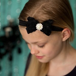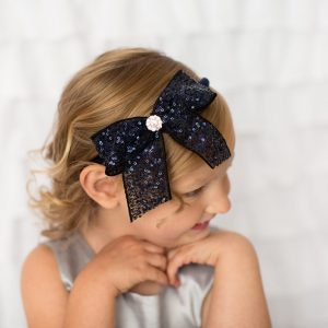 White satin small bow with Swarovski on a soft elastic bracelet.